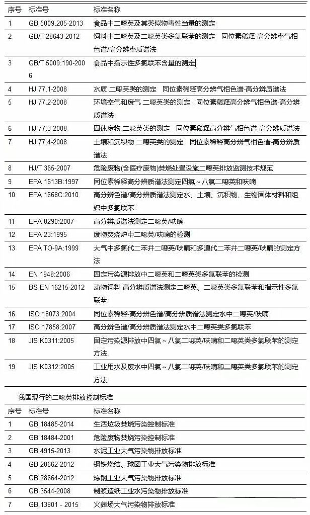 國(guó)內(nèi)外二噁英檢測(cè)標(biāo)準(zhǔn)